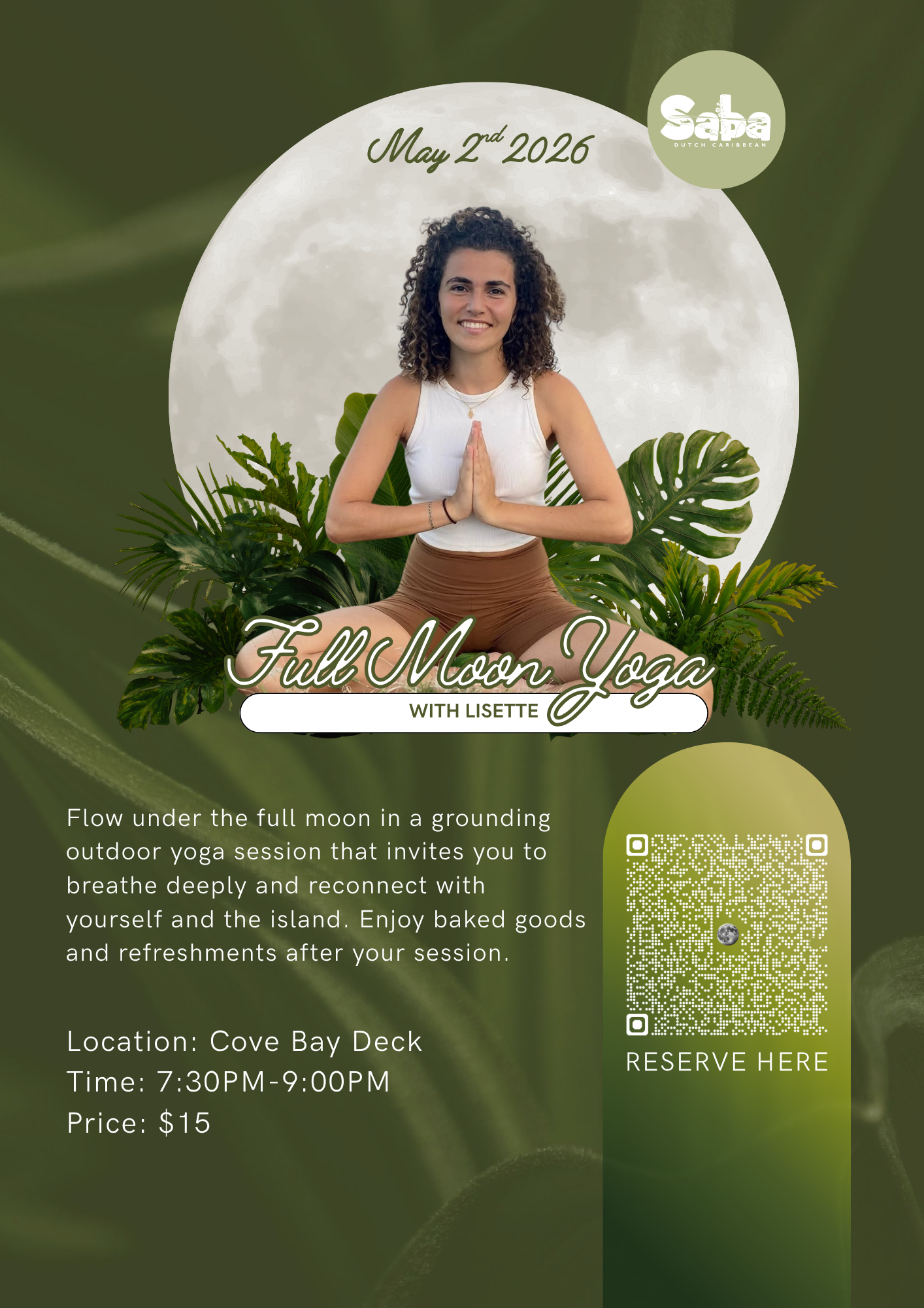 Flow under the full moon in a grounding outdoor yoga session that invites you to breathe deeply and reconnect with yourself and the island. Enjoy baked goods and refreshments after your session.