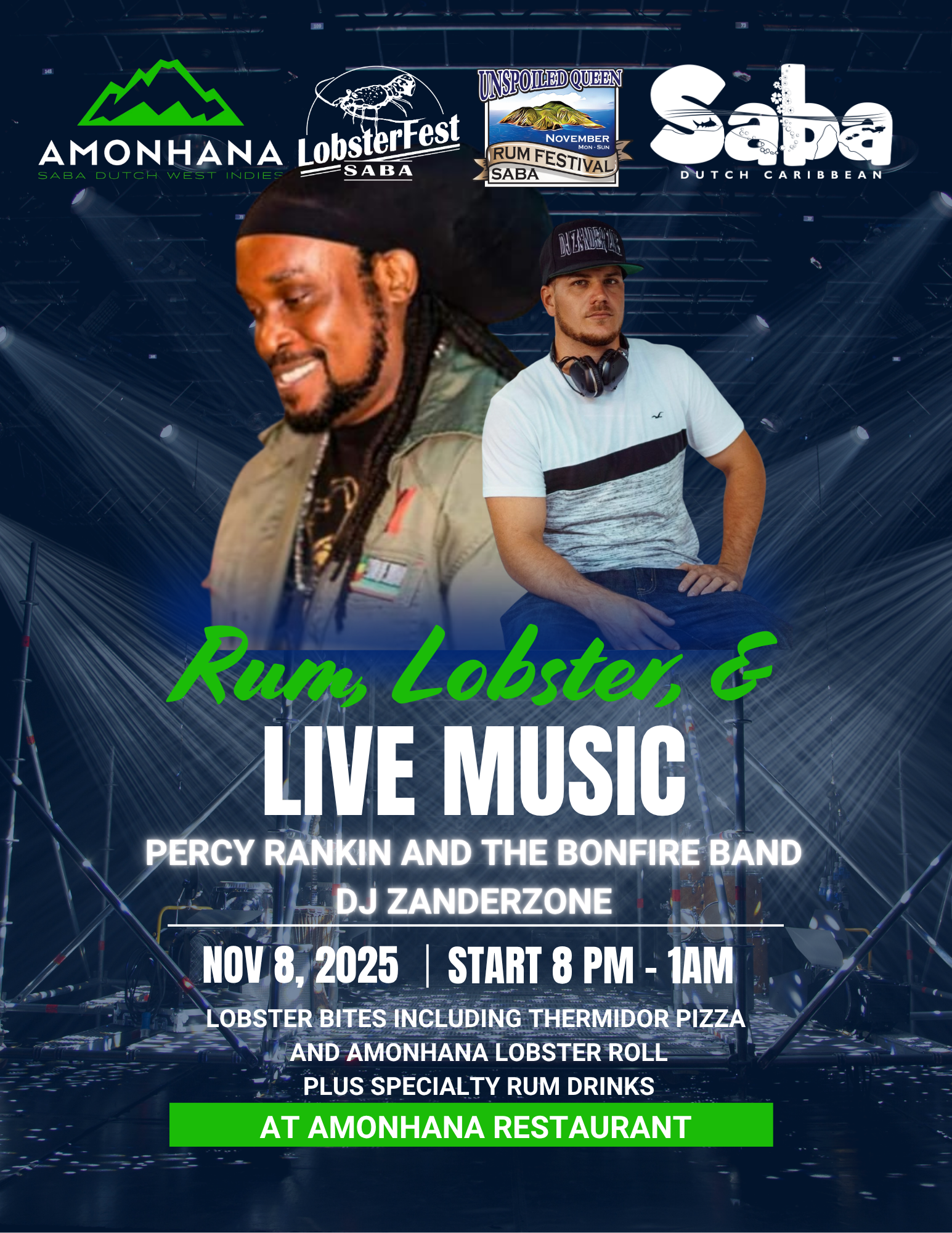 Enjoy live music by Percy Rankin and the Bonfire Band & DJ Zanderzone at Amonhana in Windwardside.