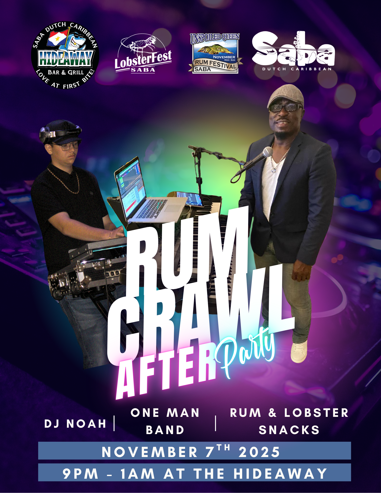 Join our rum crawl an visit 6 different bars & restaurants. Enjoy different lobster bites & 6 rum drinks. RSVP: tourism@sabagov.nl or Tel: +599 4162231